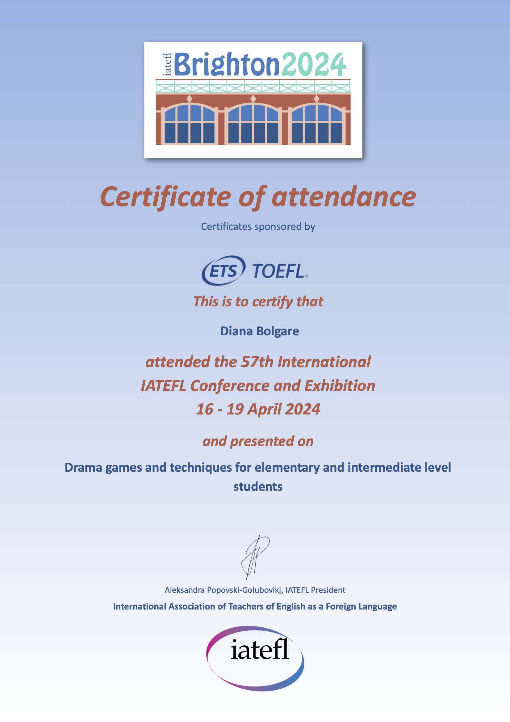 ka viņa mērķis ir praktizēt valodu